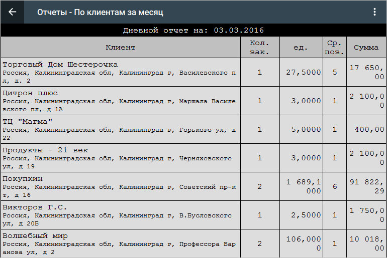 By Clients per Month Report displays information based on shipments for current month, supplemented by orders for current day.