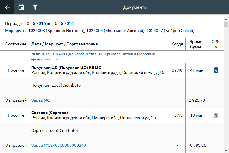 | GPS, meters | Information about correspondence of coordinates of visit with reference coordinates of Point of Sale: