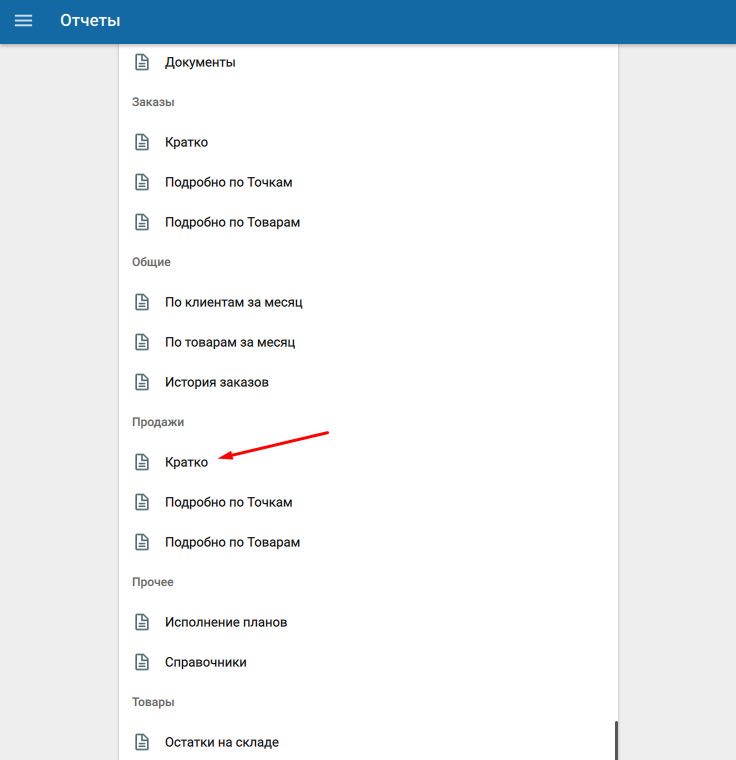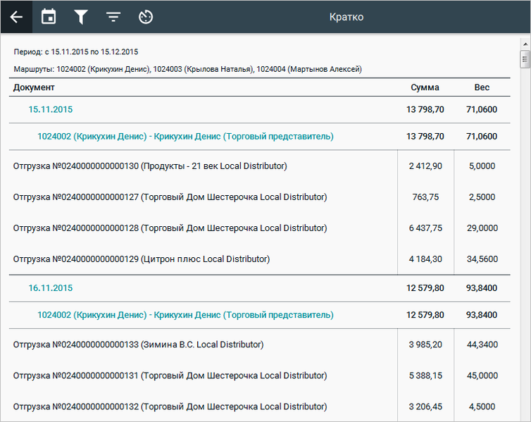 Sales Report displays information about the total amount, quantity, weight of all shipped goods for the selected period.