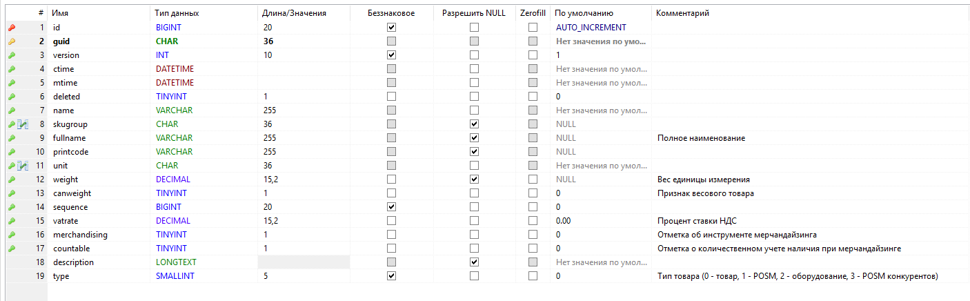 - skugroup - группа товаров, к которой принадлежит товар, ссылка на запись таблицы ref_skugroups