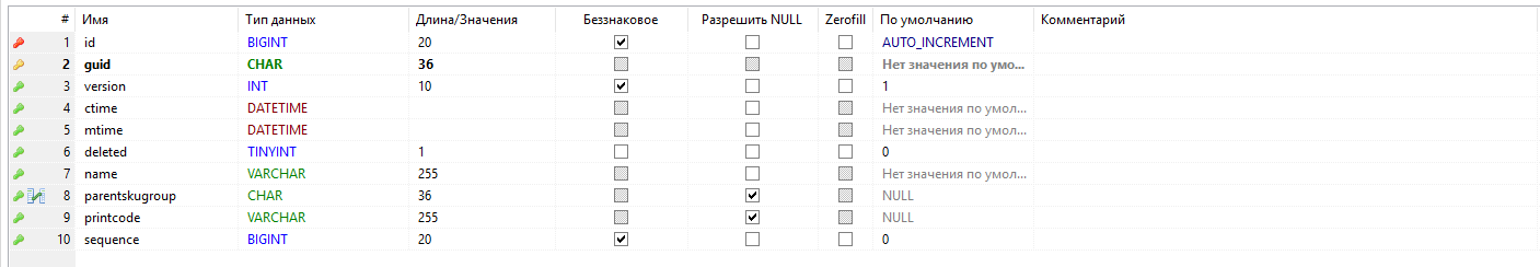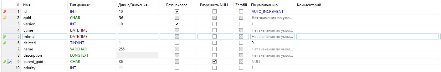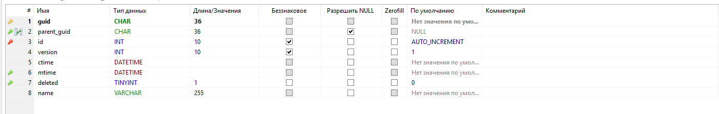 - parent_guid - родительская матрица, ссылка на запись текущей таблицы