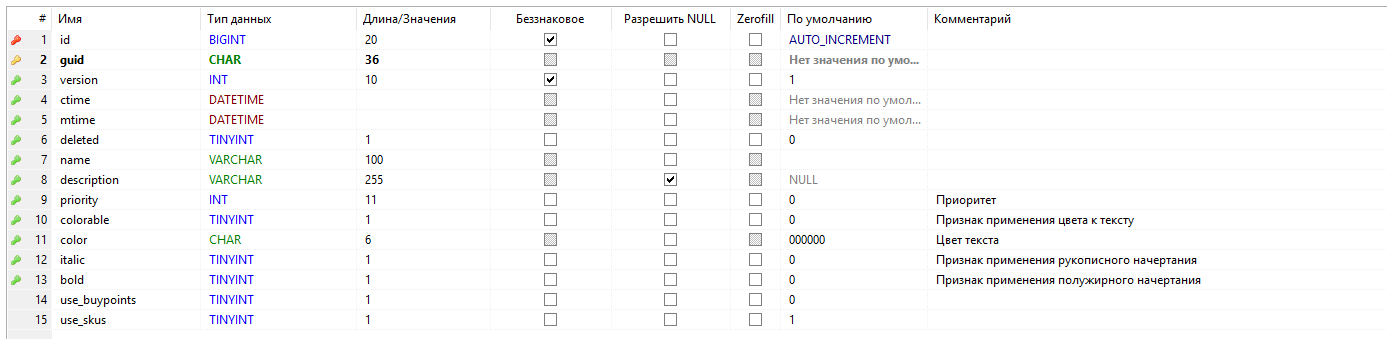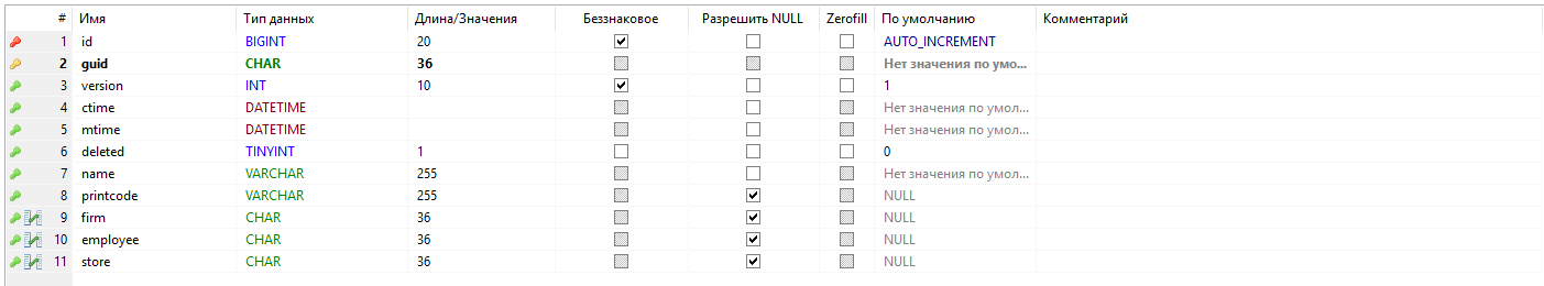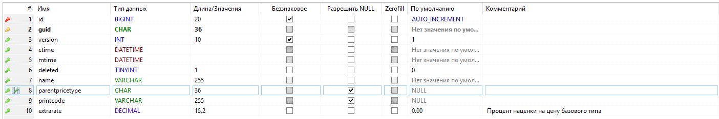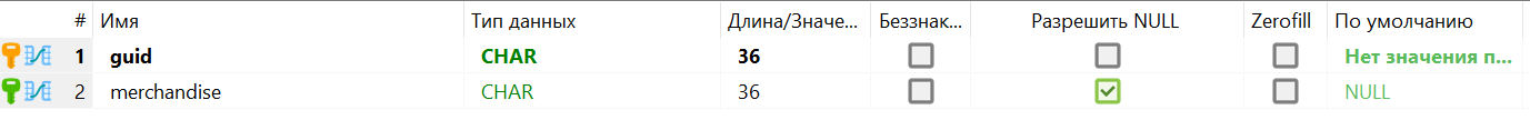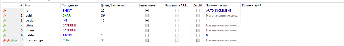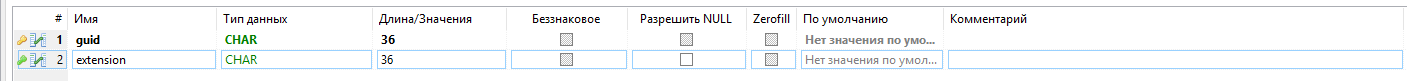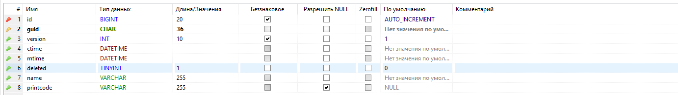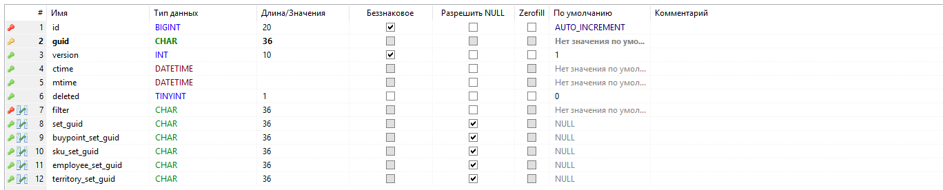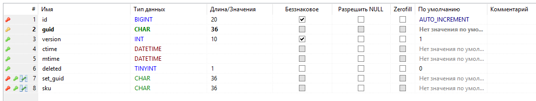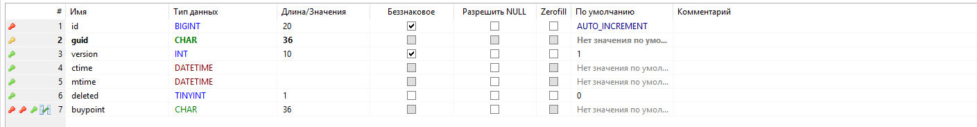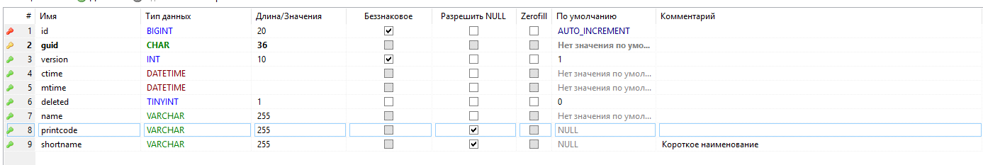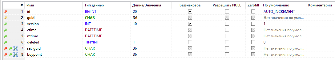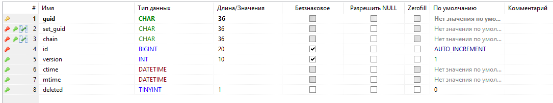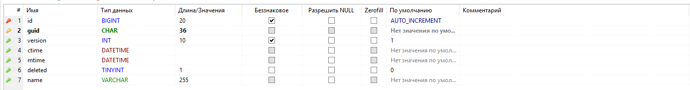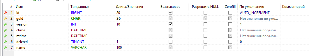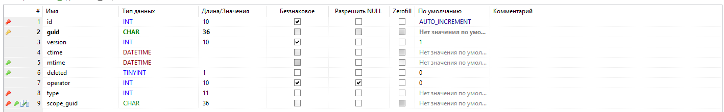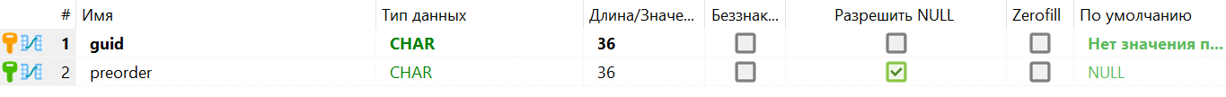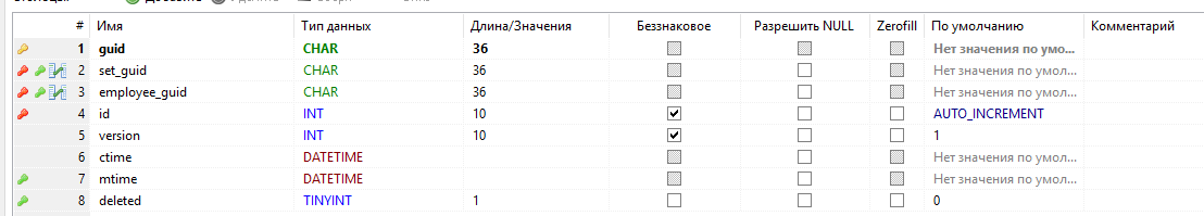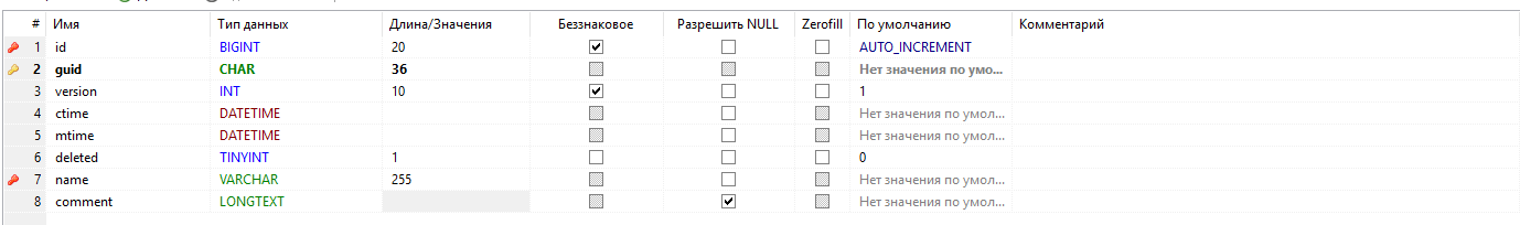 - - первичный ключ таблицы, guid;