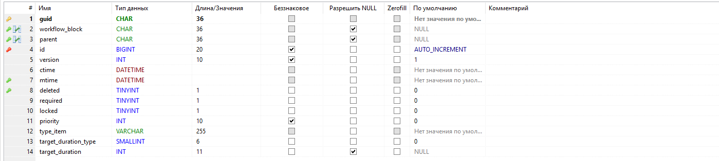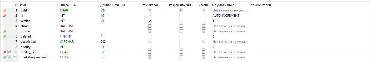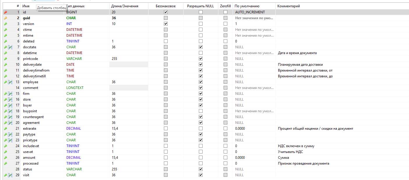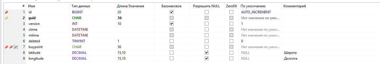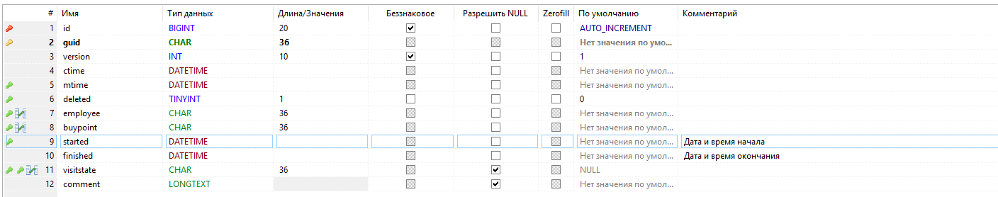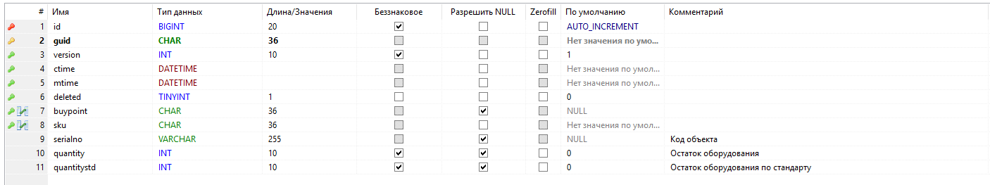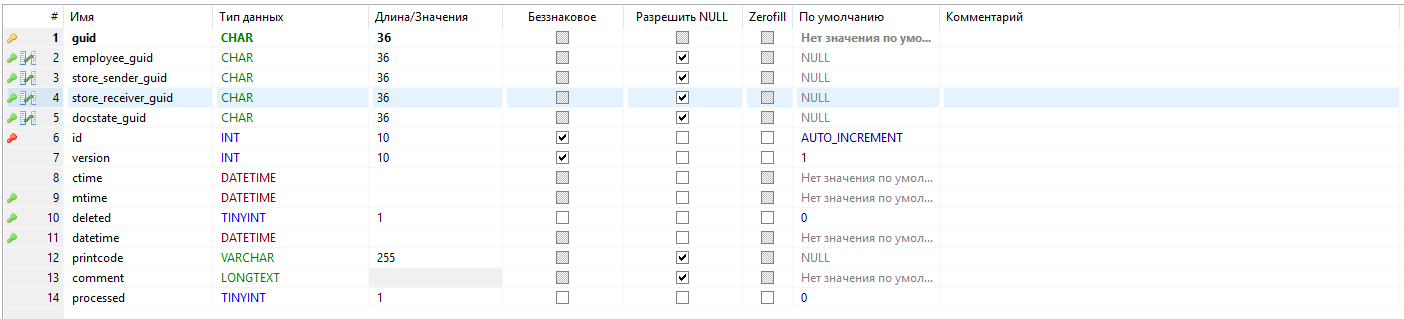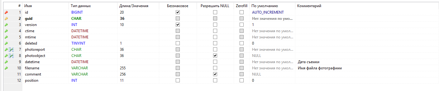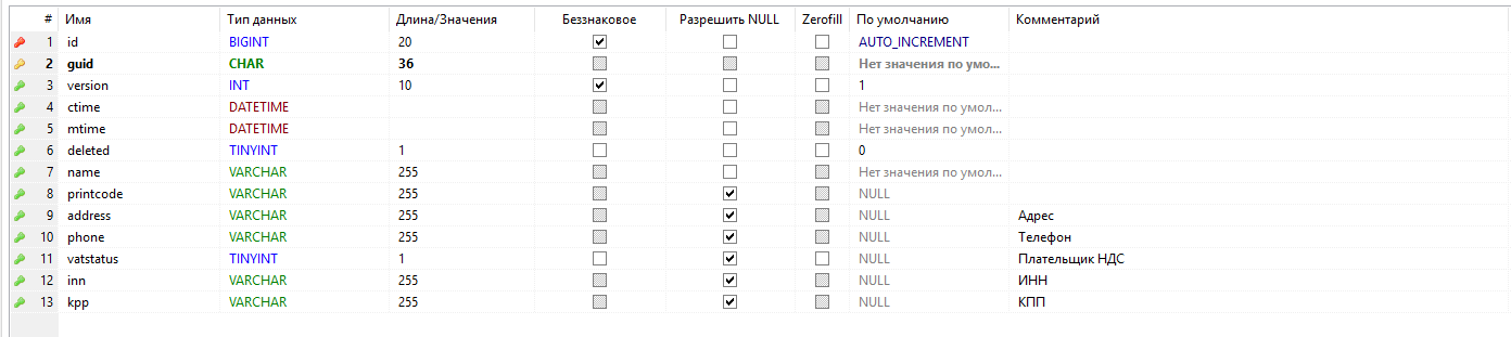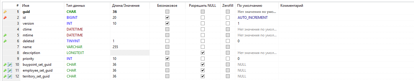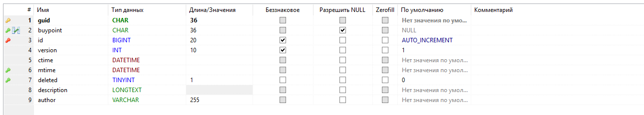 - - первичный ключ таблицы, guid;