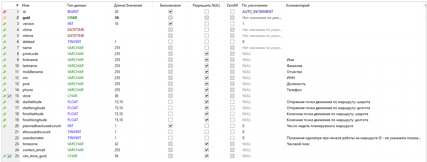 - van_store_guid - склад, с которого сотрудником оформляется отгрузка, если клиент занимается вэн-селлингом, ссылка на запись таблицы ref_stores