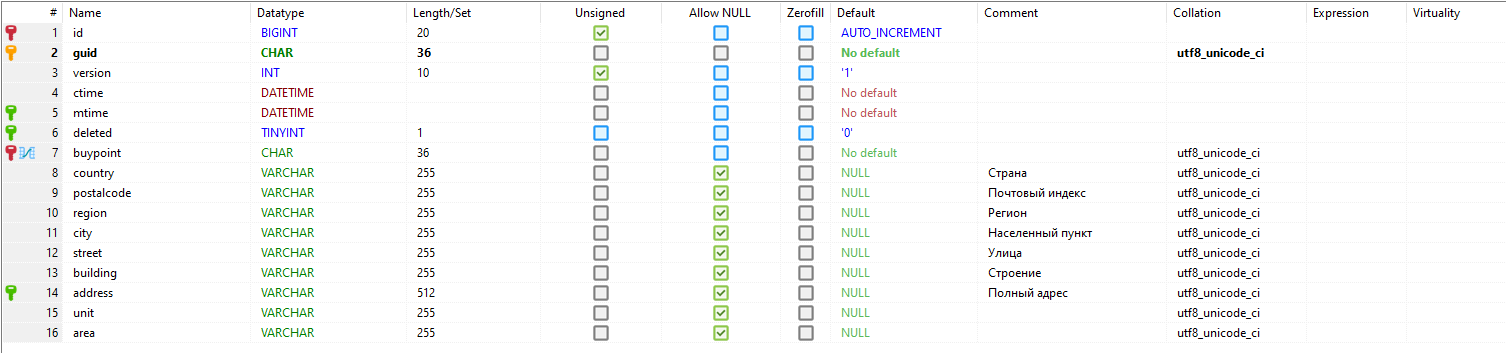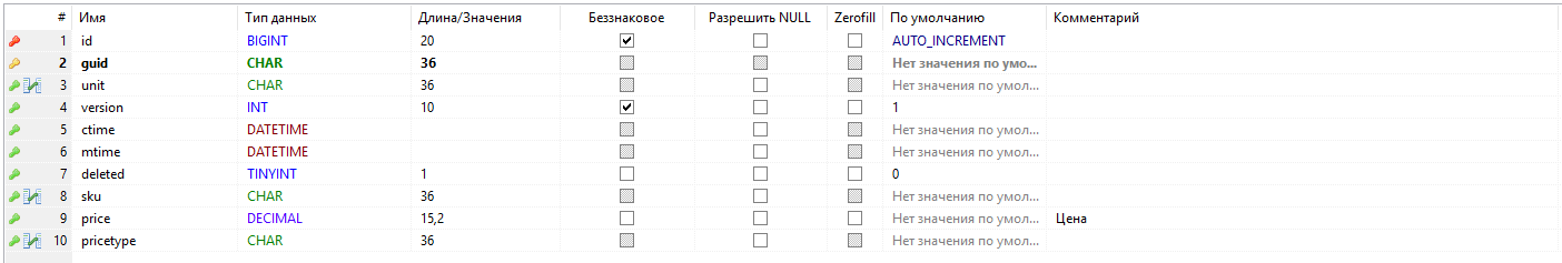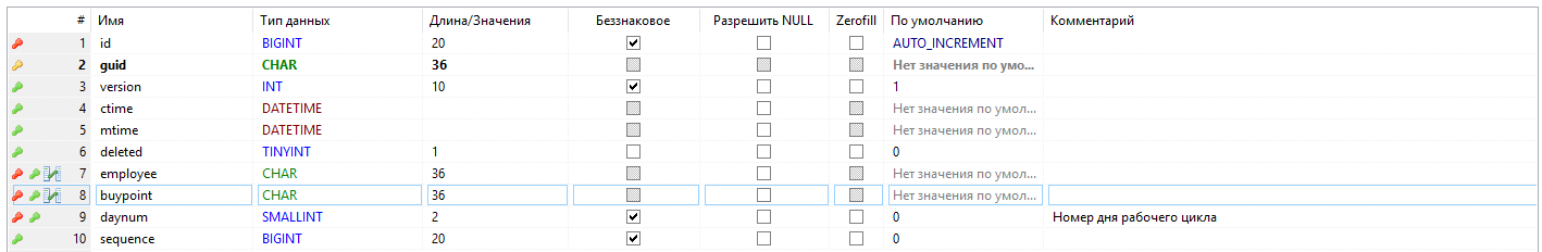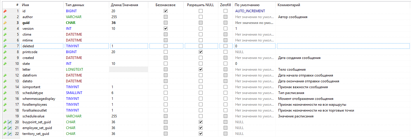- deleted - признак пометки записи на удаление (логический тип - 0 / 1);