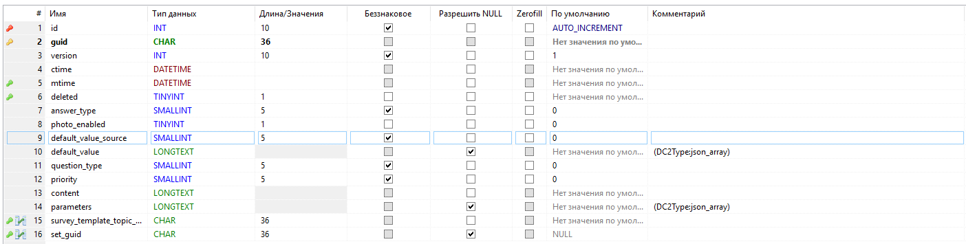 - survey_template_guid - шаблон опросного листа, к которому принадлежит тема, ссылка на survey_template