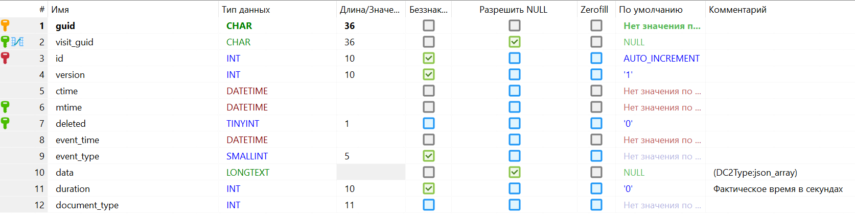 - guid - сессия, к которой относится запись, ссылка на visit_event