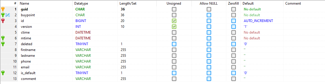 Примечание: поля phone, contact, contact_email являются устаревшими и присутствуют в таблице в угоду обратной совместимости с интеграциями.